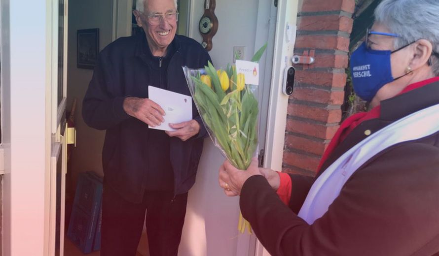 30 vrijwilligers verrassen de 90 Nederlandse WOII-veteranen en bezorgen de brief en ‘Vrijheidstulpen’ persoonlijk