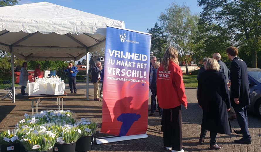 De 90 nog in leven zijnde Nederlandse WOII-veteranen ontvingen op 21 april 2023 een dankbrief geschreven door de Gelderse scholieren. 30 vrijwilligers hebben deze dankbrieven vanochtend in ontvangst genomen en hebben de brieven persoonlijk overhandigd. Ook dit jaar hebben Gelderse scholieren -van RSG Pantarijn Wageningen, Montessori College Nijmegen, Veluws College Walterbosch Apeldoorn en Gymnasium Apeldoorn- een brief geschreven waarin ze o.a uitleggen wat de verworven vrijheden voor hen vandaag de dag betekenen. Locoburgemeester van Wageningen, Erik-Jan Bijleveld, en voorzitter van Wageningen 45, Tanja Haseloop-Amsing overhandigde de brieven en een bos ‘Freedom Fire Tulips’ aan de vrijwilligers. Zij bezoeken de veteranen verspreid door heel Nederland, van Leeuwarden tot Maastricht. De brieven voor veteranen uit België, Frankrijk, Groot-Brittanië, Canada, Verenigde Staten, Polen en Noorwegen die op Nederlands grondgebied hebben gevochten krijgen de persoonlijke brief per post vóór 5 mei.
