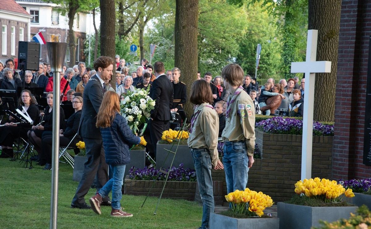 20.05 uur De burgemeester en kinderburgemeester leggen een krans namens alle inwoners van Wageningen. Vervolgens leggen leerlingen van de Johan Frisoschool namens alle door de basisscholen geadopteerde monumenten een bloemstuk, gevolgd door de vertegenwoordigers van maatschappelijke organisaties. Daarna kunnen deelnemers aan de Stille Tocht desgewenst zelf een bloemstuk of bloemen neerleggen.