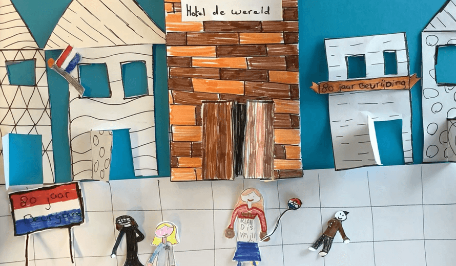 Op het buitenscherm van de bblthk zie je op 5 mei ‘Mijn stad bevrijd’. De feestelijke stopmotionfilmpjes zijn gemaakt door leerlingen van de basisscholen. Op de filmpjes ziet u dat de vlag uit gaat en inwoners hun huizen verlaten om te vieren dat Nederland bevrijd is.