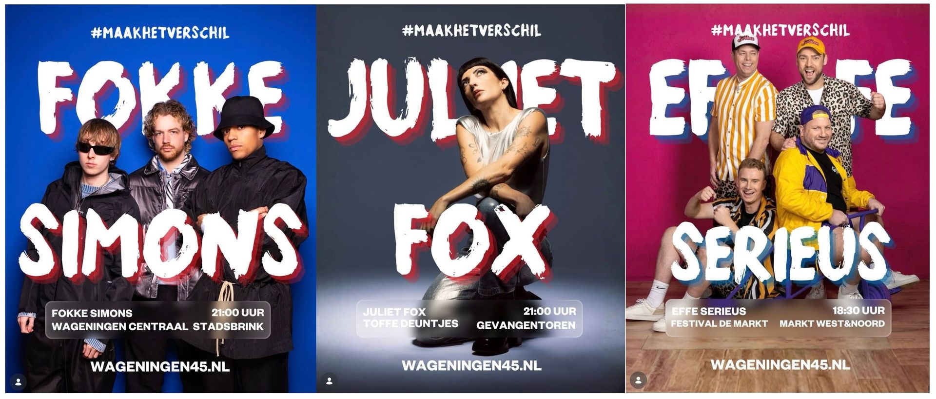 Festival de Markt - Effe Serieus Ook Effe Serieus komt naar Wageningen! Op 5 mei om 18:30 uur bouwt Effe Serieus een feestje op Festival de Markt. Verwacht meezingen, dansen, geinige plaatjes en een aanstekelijke sfeer. Effe Serieus staat bekend om hun uitbundige liveshows, vol onverwachte wendingen, interactie en strak gemixte hits. Ze krijgen iedereen in beweging, van de eerste beat tot de laatste gekkigheid. |