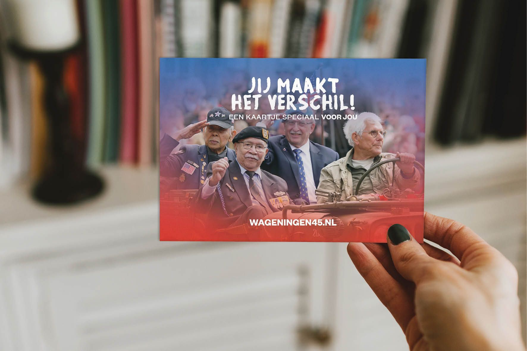 Wie maakt voor jou het verschil? Wie zet een extra stap voor jouw vrijheid? Een vriend of een familielid? Een docent of collega? Of een andere sleutelfiguur in jouw leven? Schrijf die verschilmaker een Wageningen45-kaart om te bedanken. Zo geef jij de vrijheidsboodschap door én maak je dus op je eigen manier het verschil!